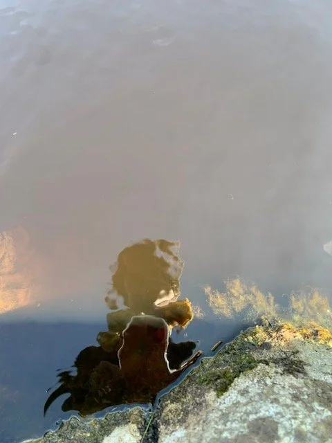 As I sat next to the pool, on an outcropping, my feet resting in spongy ground, I saw her cross floating in the pool, and it's as though her energy seeped into me, nourishing my own courage. Suddenly I knew: now is the time and place to baptize myself. And I did. Though I'd never heard of Thecla. Though I had no idea any woman had ever done such a thing. Brazen, I baptized myself in the name of the Birther/Father-Mother of the Cosmos, in the name of the Innocent Child, in the name of the Breathing Life of All.