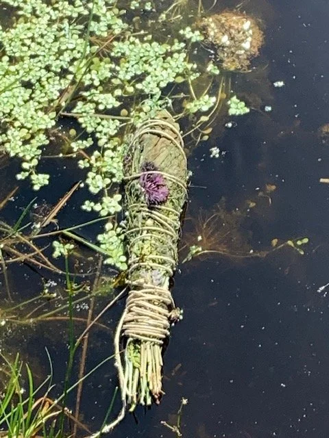 I hadn't planned to baptize myself, but even before leaving for the pilgrimage I began shedding a skin of the small "I". Because this wasn't the first sort of "quest" I'd gone on, I knew that helpful preparation included cleaning out physical, emotional, relational and spiritual clutter in order to make room for new life. In that spirit I set about cleaning out a closet that held binders and binders of content for past groups, retreats and offerings I'd led. Going into it, I thought I'd mostly be organizing those things and culling just a bit. But as I opened binder after binder and notebook after notebook, I realized that the content no longer reflected who I was and how I understood the Divine. To my great surprise I dumped nearly the entire closet into our recycling bin! This felt a both terrifying and freeing.